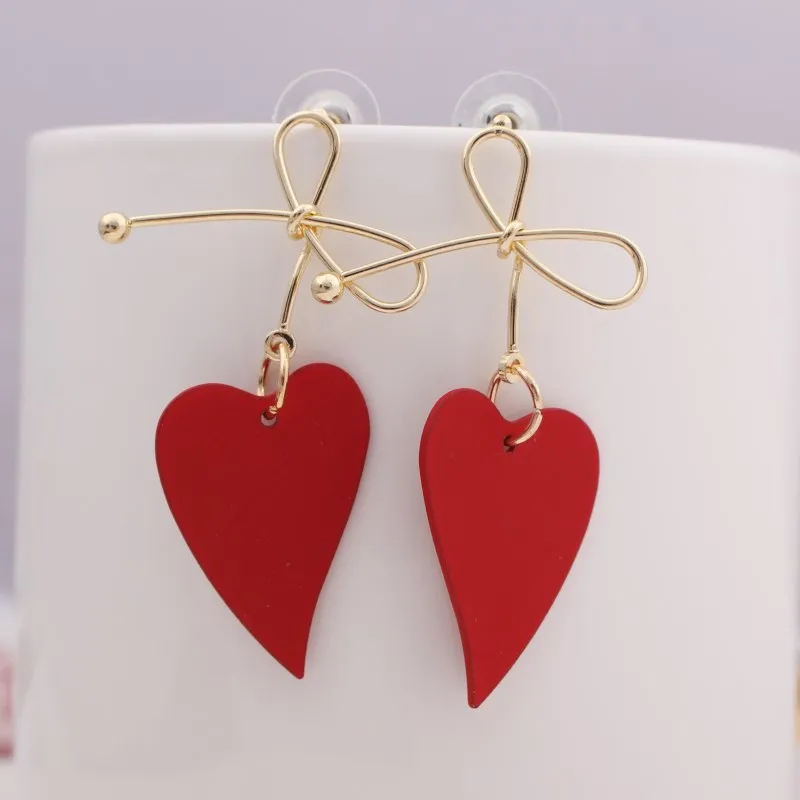 EK553 Новый стиль Золотой цвет большой металлический бант подвесное сердечко серьги для женщин ручной работы сладкие свадебные ювелирные изд...