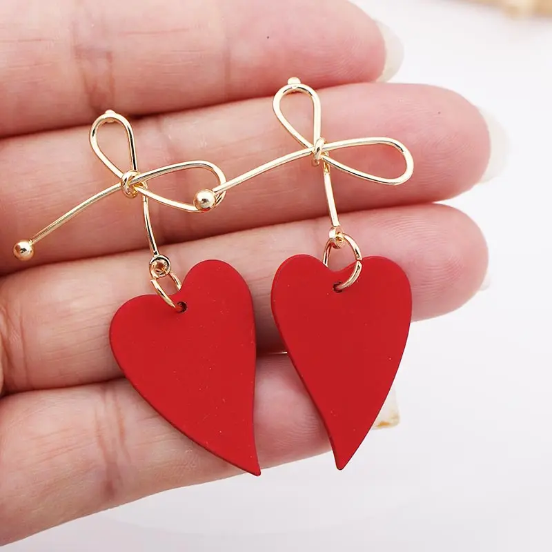 Bowkont красные розовые металлические любовные сердечки серьги длинные висячие серьги ювелирные изделия для женщин золотой цвет витые серьги ...