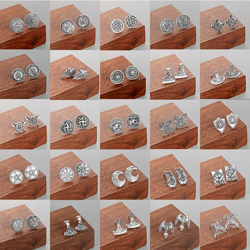 Chereda винтажные викинговые серьги-гвоздики для мужчин, античный Серебристый Круглый славянский миф, скандинавские серьги, мужские Т-образные серьги, модные ювелирные изделия