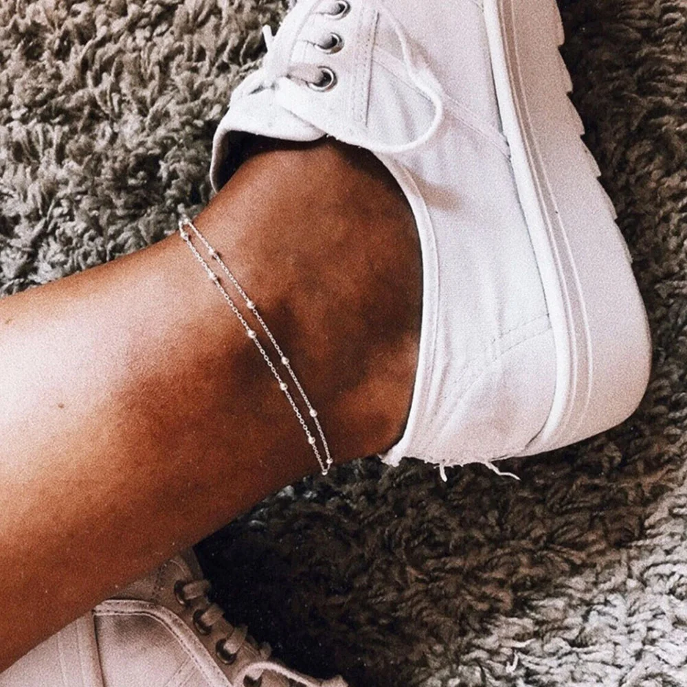 Простые двойные Слои Золотой Серебряный ножной браслет 2019 женские браслеты для щиколотки Браслет На Лодыжку Босиком Сандалии Ювелирные из...