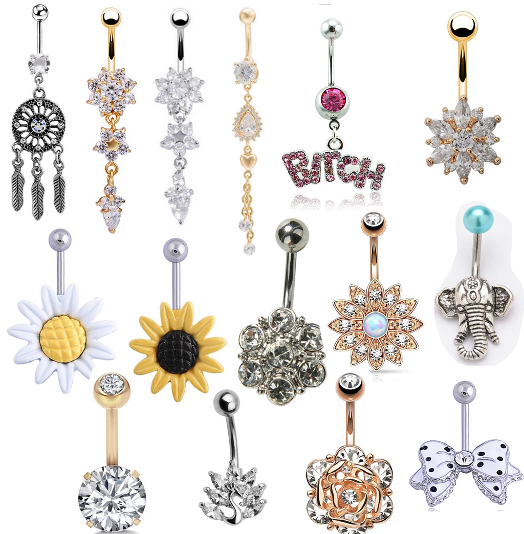 1 шт., стразы, ювелирные изделия для тела, Висячие кисточки, пирсинг для пупка и колокольчика, кольца, цветок, слон, змеиная форма, женское бики...