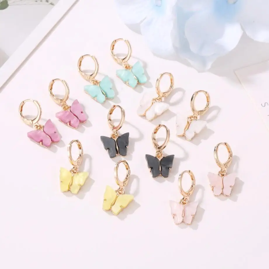 Новинка 2020, женские серьги, модные, 6 цветов, акриловые, Бабочка, серьги-гвоздики, животные, милые, Разноцветные серьги, ювелирные изделия для девушек, хит продаж