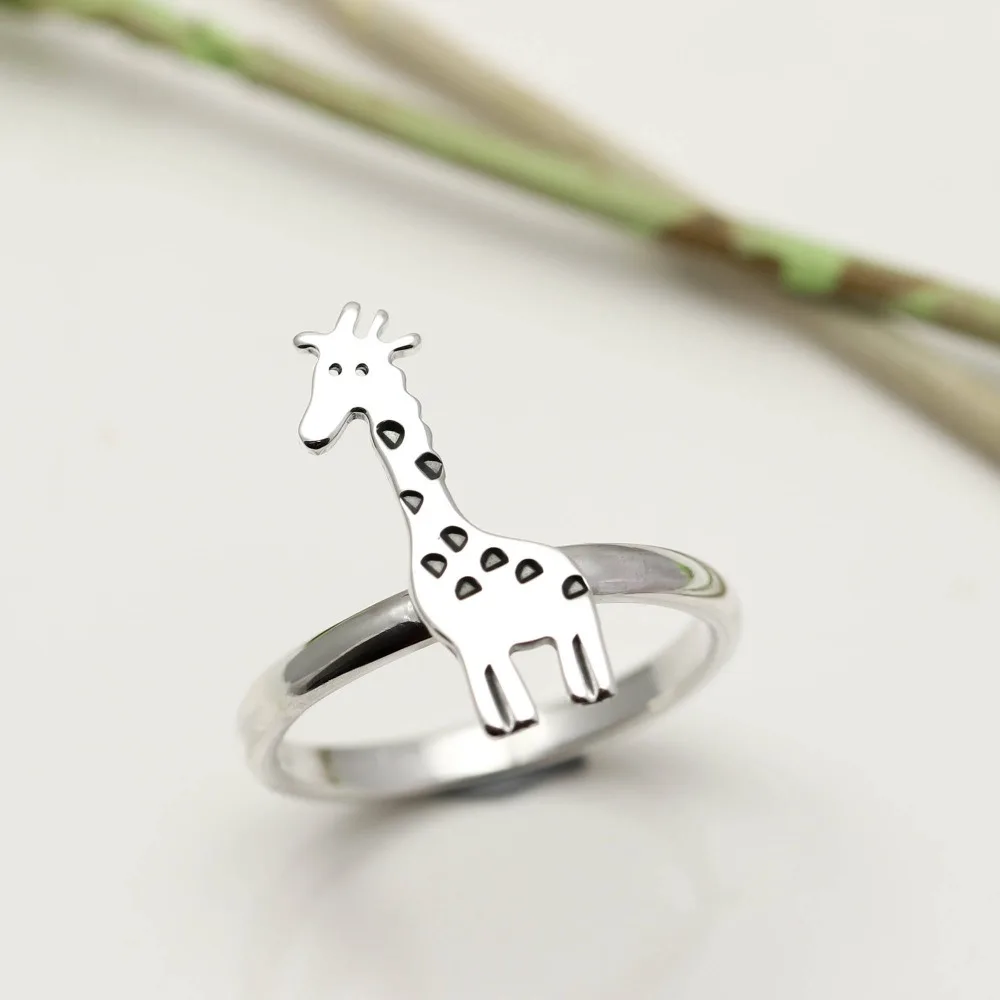 Ромашки милый кулон в форме жирафа кольцо животного с черной эпоксидной смолой для женщин ювелирные изделия подарок на день рождения