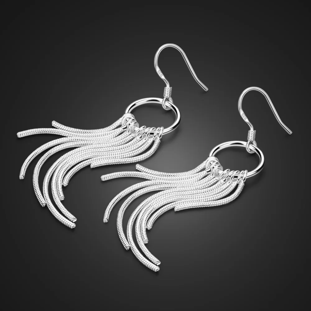 Модные однотонные 925 пробы серебро длинные серьги кисточкой для Новинки для женщин Дизайн элегантные дамы подарки 100% стерлингов серебряные...