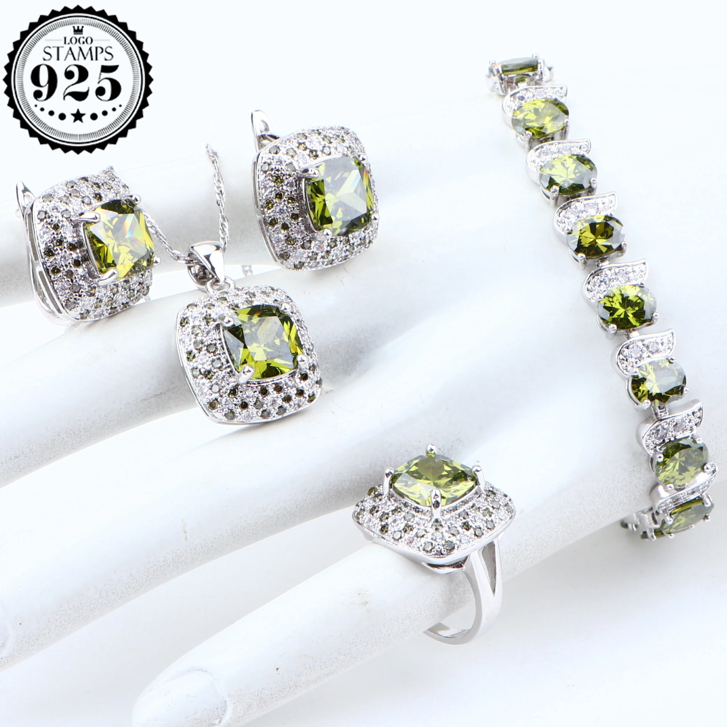 Свадебные кубические Zirocnia комплекты украшений для женщин серебро 925 Ювелирный костюм камень серьги, браслет, кольцо ожерелье кулон набор