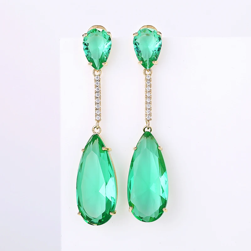 Вода циркониевая капля Турмалин длинные серьги Новое поступление Мода родиевое покрытие Висячие серьги для свадьбы Бразилия оптовая прода...