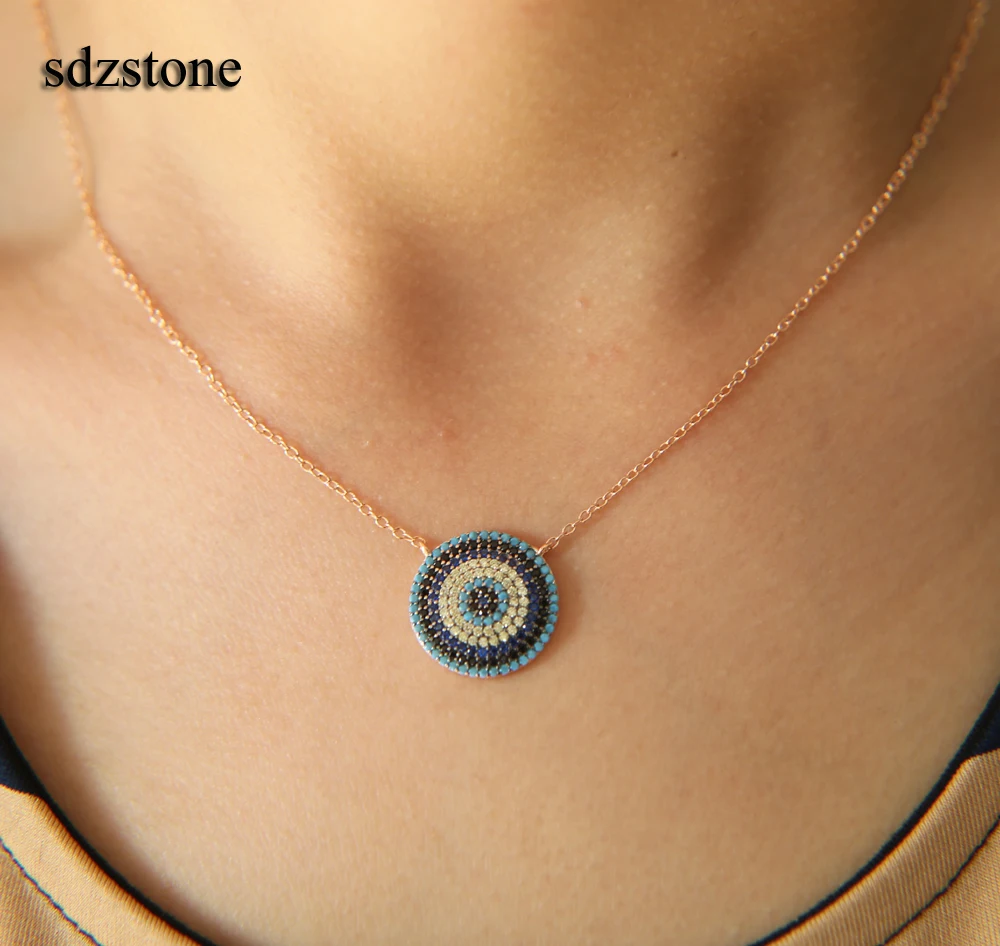 Новые Аутентичные стерлингового серебра 925 Турецкий сглаза микро проложить новый розовое золото цепочки и ожерелья
