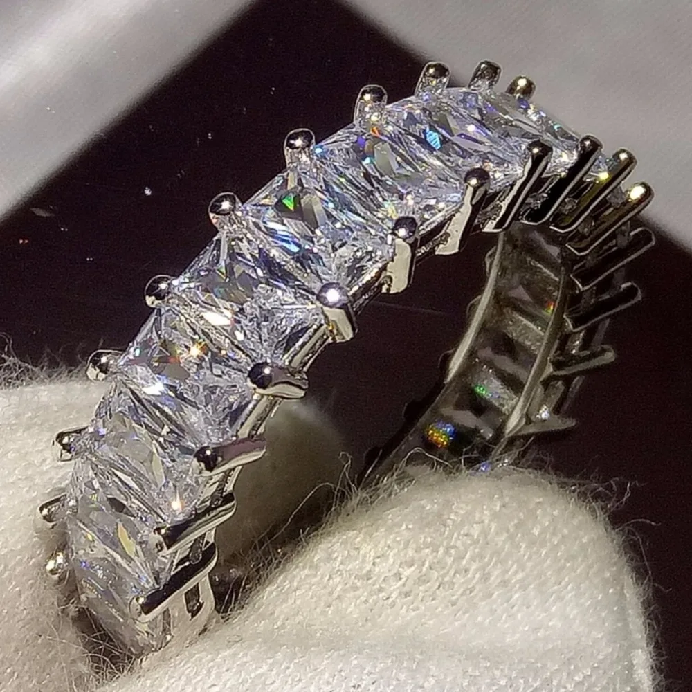 Новое поступление Роскошные ювелирные изделия стерлингового серебра 925 Принцесса Cut 5A Цирконий полный Площади CZ вечерние enternity Для женщин о...