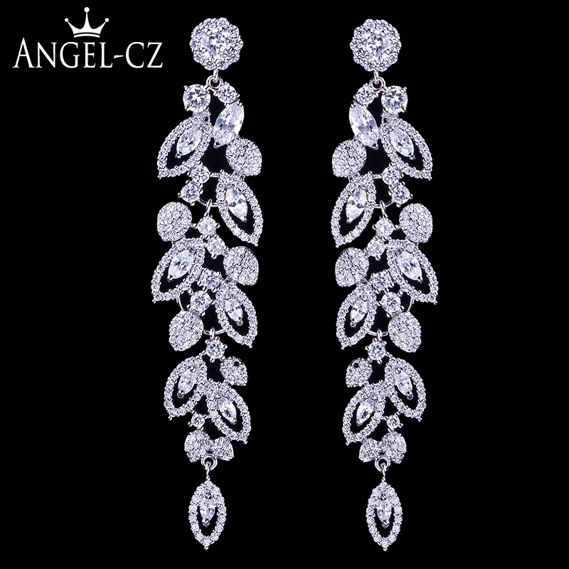 ANEGLCZ себе CZ украшений элегантный маркиза ААА кубического циркония супер длинные серьги свадебные серьги для Для женщин AE184