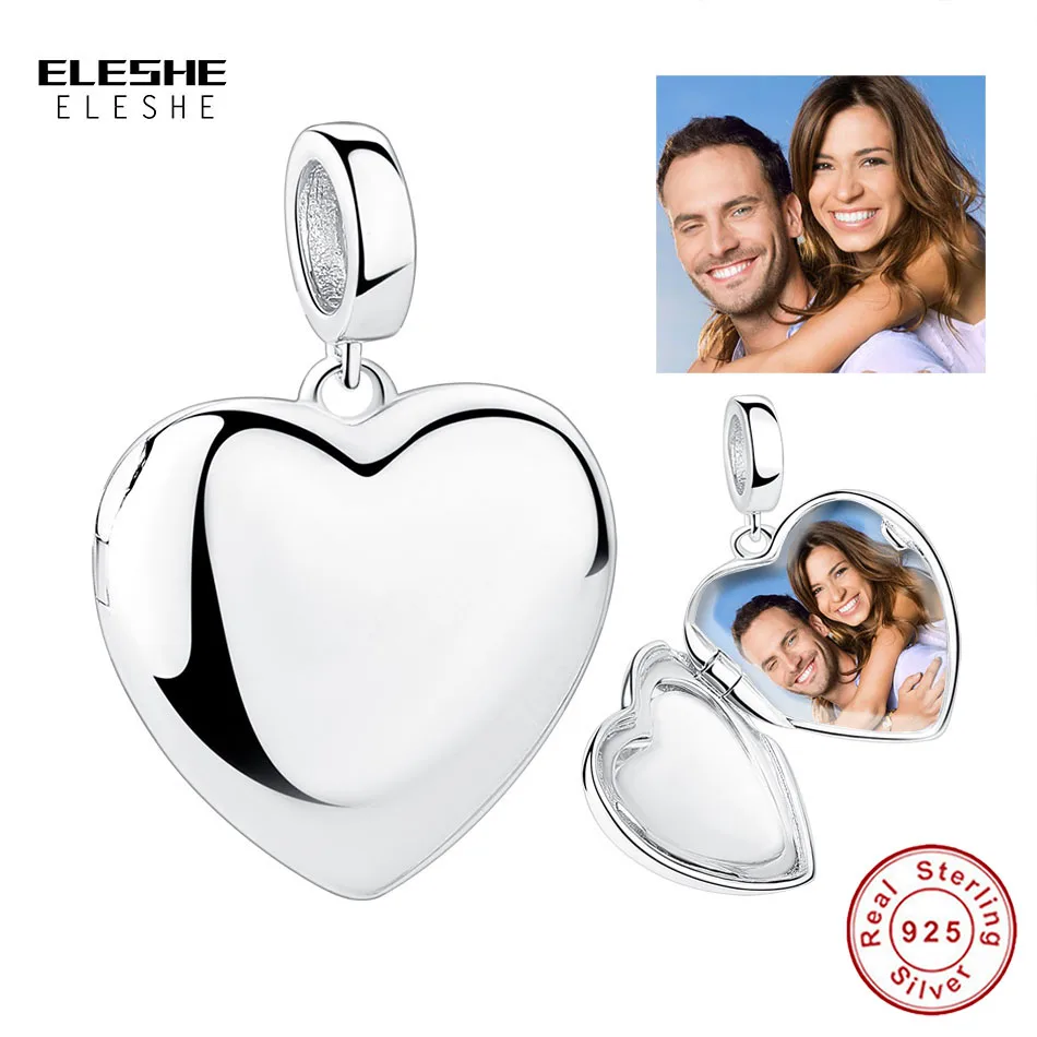 ELESHE Бесплатный заказ фото 925 пробы серебро бусина-Шарм для браслета Цепочки и ожерелья самодельное сердечко персонализированные ювелирные ...