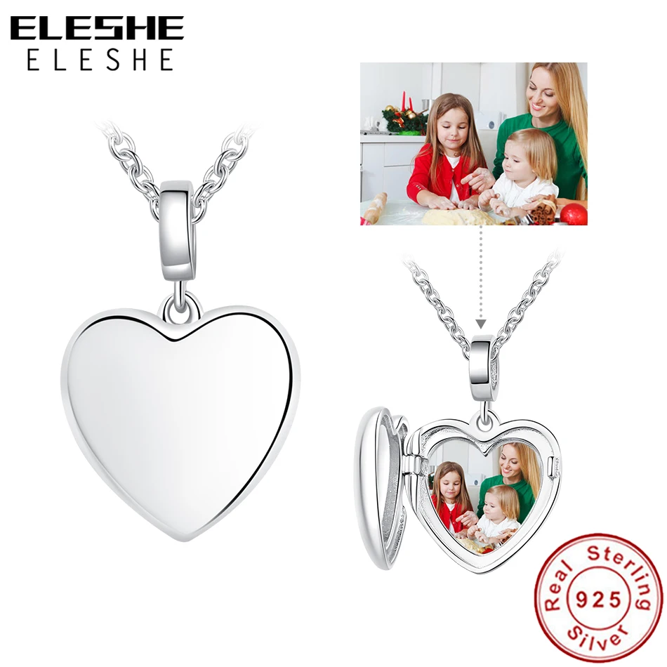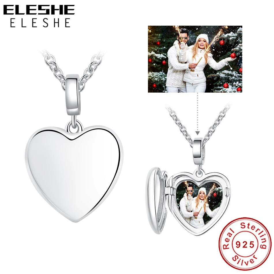 ELESHE, персонализированное фото, ожерелье с подвеской в виде сердца, 925 пробы, серебряная цепочка, ожерелье для женщин, свадебные украшения для...