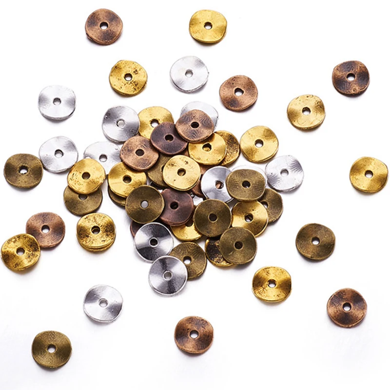 Смешанный Цвет тибетский серебряный сплав диск шарики прокладки, кадмия и Никель и свинец, 10x1 мм, отверстие: 2 мм; около 420 шт./200 г