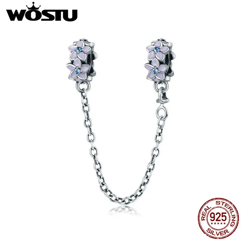 WOSTU, лидер продаж, 925 пробы, серебряные цветы орхидеи, кремния, безопасная цепочка, шарм, подходит для Wostu, оригинальные бусины, браслет, ювелирное изделие CQC602