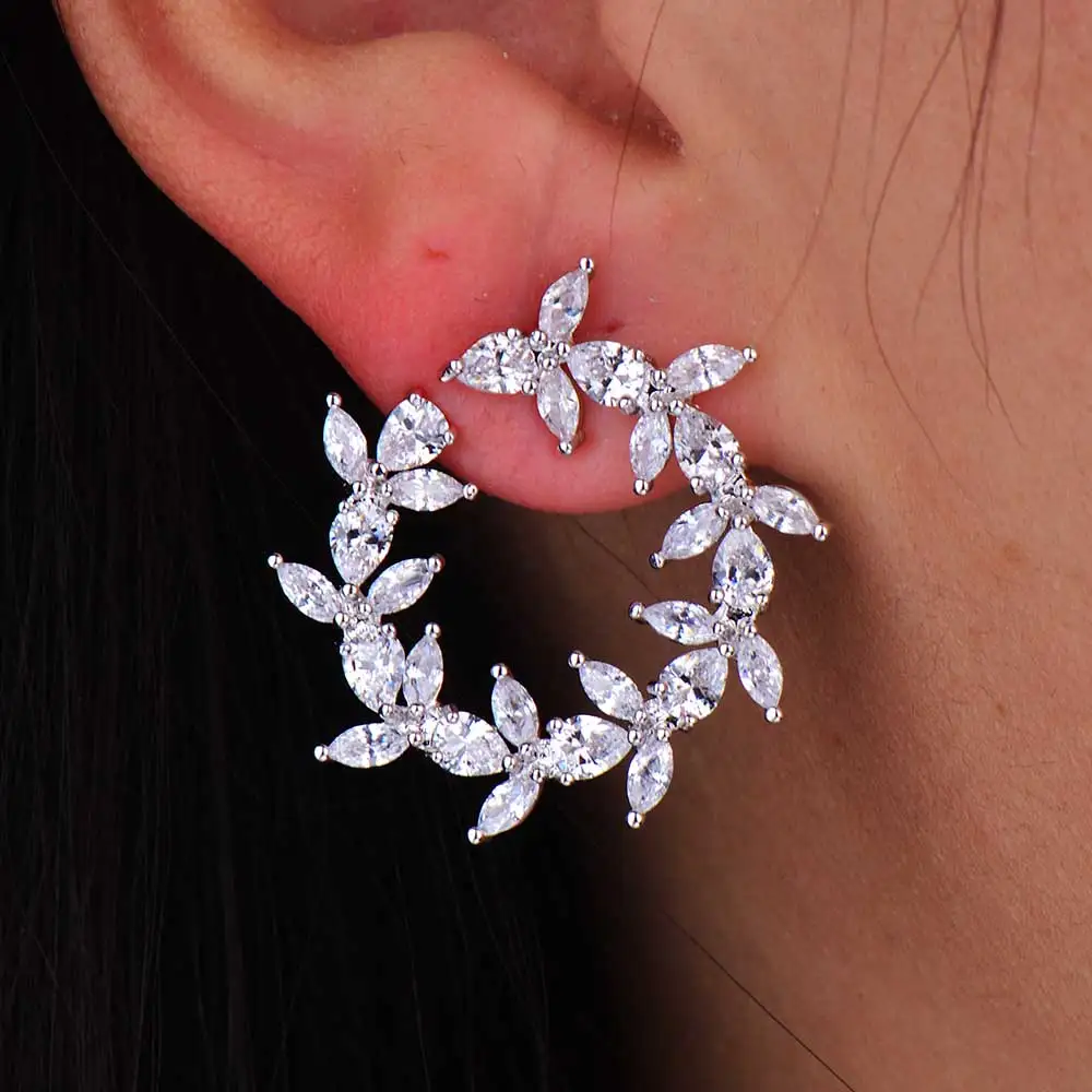 Godki Новое поступление Мода кубического циркония блестящий элегантный цветок серьги стержня для Для женщин Размеры 1,8 см * 1,8 см