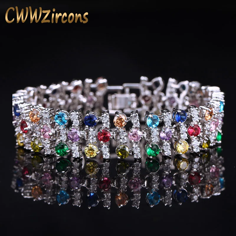 Cwwzircons романтические вечерние аксессуары белого золота Цвет Multi Цвет большой кубического циркония камни Браслеты браслеты для Для женщин ...