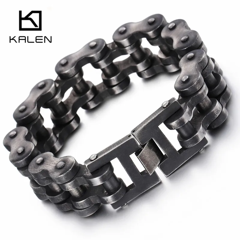 Kalen Тяжелая коренастый 22 мм Ширина Матовый велосипед браслет-цепочка Для мужчин с 23 см длинные Нержавеющая сталь окисленного темно скучно с...