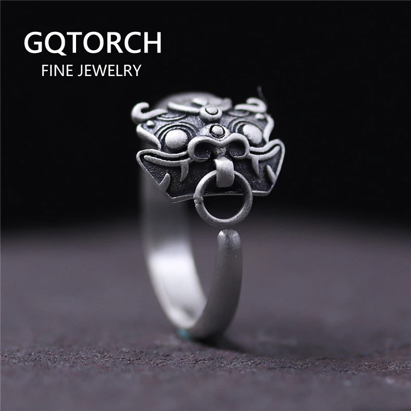100% реальные Чистые 925 пробы серебряные кольца животных для Для женщин античной мифологии прожорливый личность открытым Тип