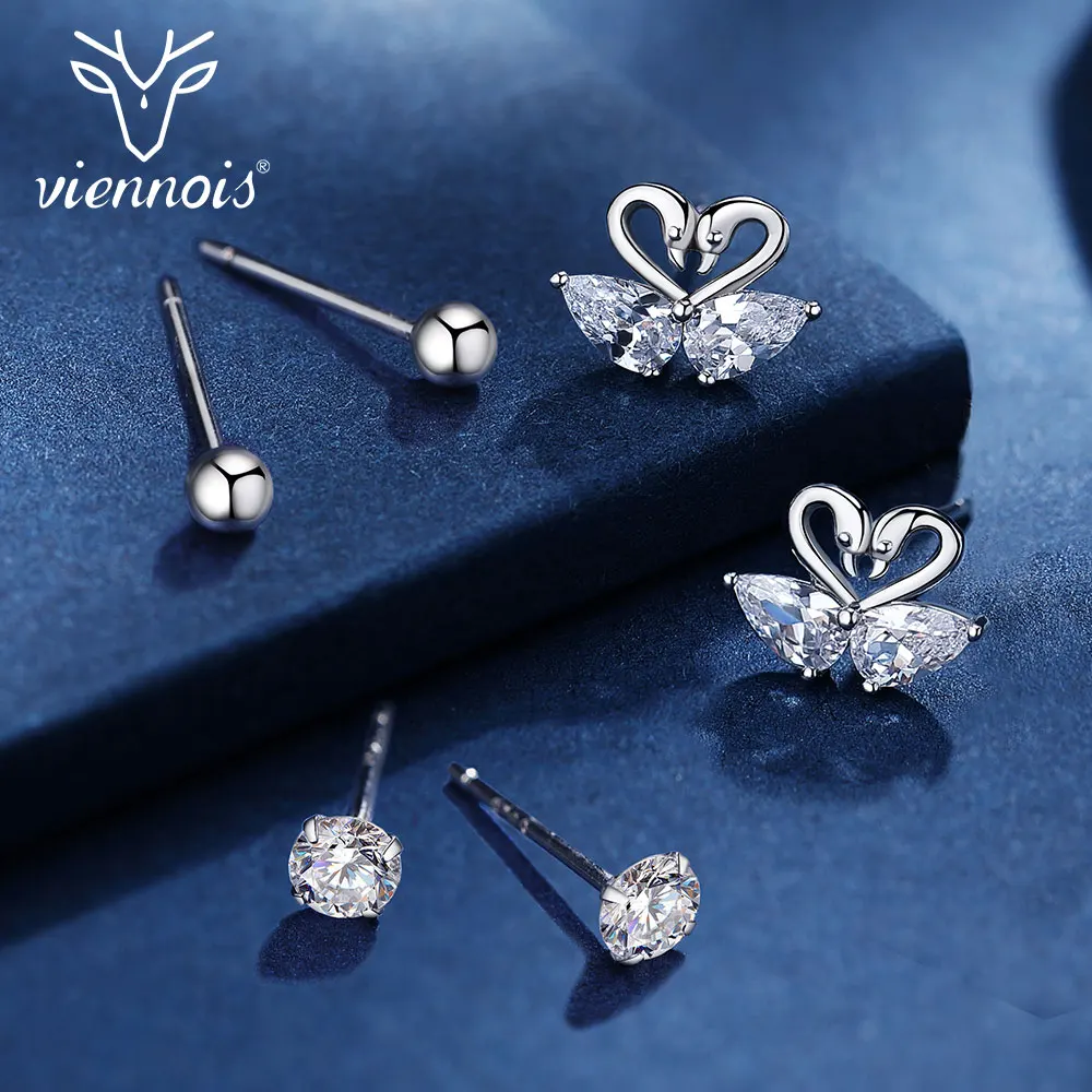 Viennois 925 пробы серебряные циркониевые серьги-гвоздики для женщин, серьги в виде лебедя, ювелирные изделия (3 в 1)