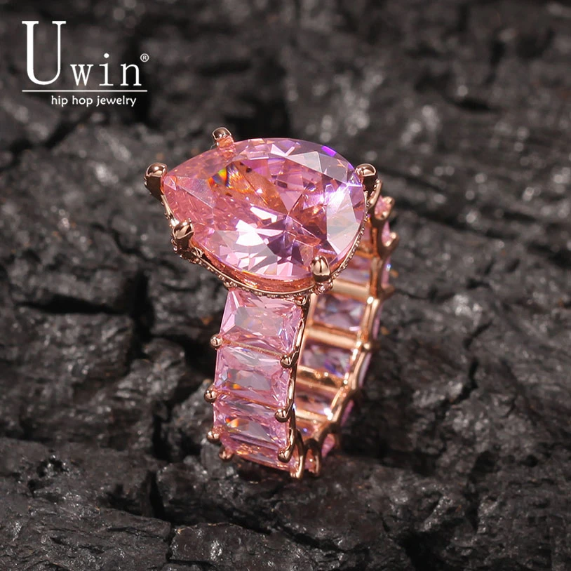 Uwin, капли воды, большой драгоценный камень, багет, CZ кольцо, полное золото, кольцо со льдом, кристалл, кубический цирконий, роскошная мода, хип-хоп, Ms. Jewelry, подарок