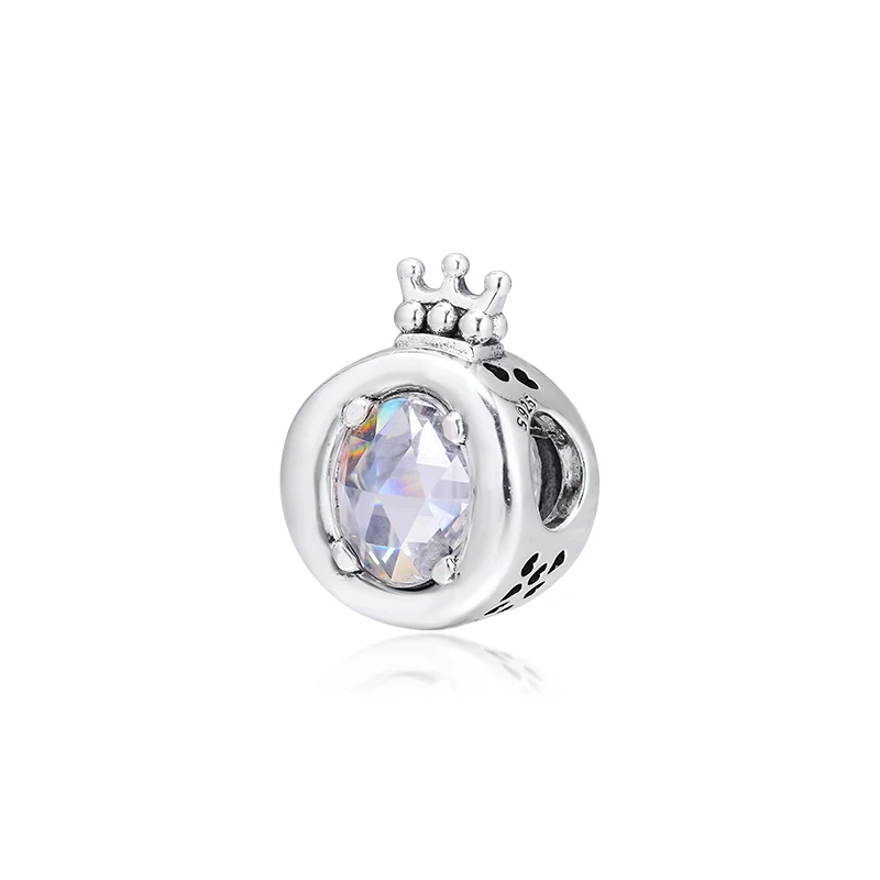 Прозрачная сверкающая Корона O Подвеска Стерлинговое серебро ювелирные изделия Подходит для оригинальных шармов Браслеты Женские DIY бусин...