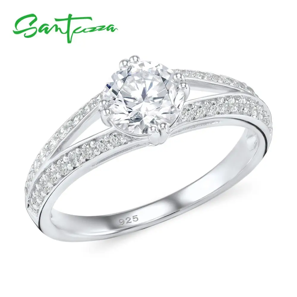 Santuzza Серебряные кольца для Для женщин Обручение обручальное кольцо CZ камни кольцо обручальное кольцо чистый 925 пробы серебро Модные украше...