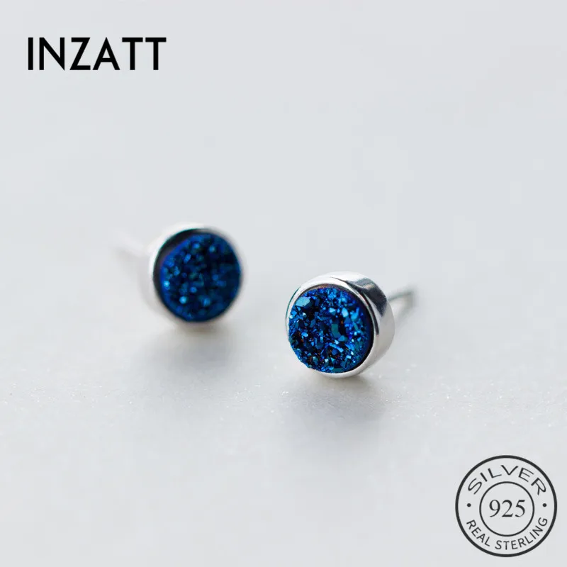 INZATT богемные геометрические круглые кьянитовые серьги-гвоздики из стерлингового серебра 925 пробы для женщин Druzy Stone модные ювелирные украше...