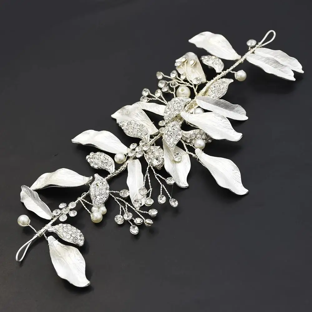 Свадебные аксессуары для волос изысканный цветок лист оголовье кристалл жемчуг тиара и корона ручной работы свадебные украшения для голов...