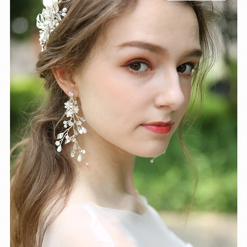 Jonnafe Модные Серебристые Цветочные Свадебные серьги хрустальные свадебные аксессуары украшения ручной работы жемчуг Для женщин серьги