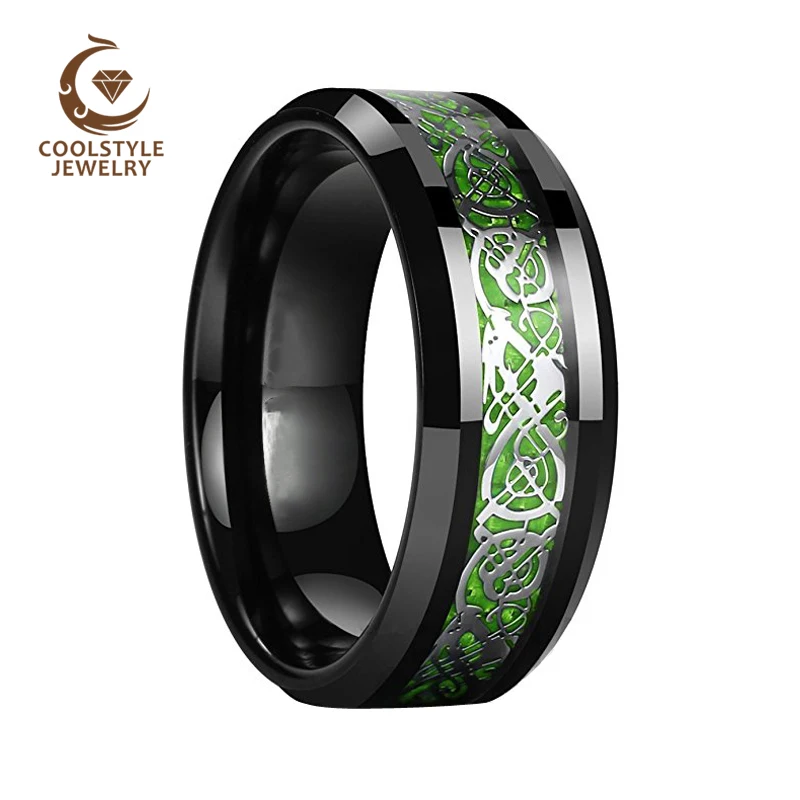 Черное карбидо-вольфрамовое мужское кольцо обручальное кольцо с светильник из зеленого углеродного волокна сталь дракон инкрустация комфортная посадка