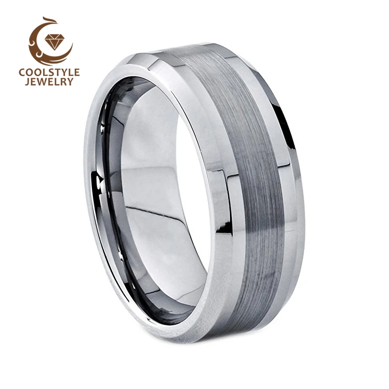 8 мм для мужчин и женщин, мужское кольцо из карбида вольфрама, обручальное кольцо с центром, полированное, скошенное, комфортное прилегание