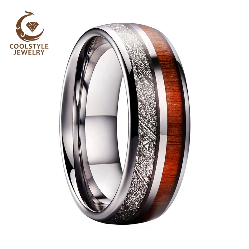 Мужская и женская Свадебная лента Вольфрамовая инкрустация кольцо 8 мм с натуральным деревом и метеоритом инкрустация удобная посадка