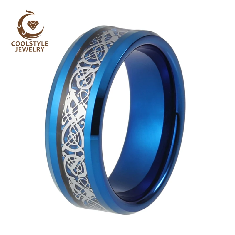 8 мм синий свадебный браслет из карбида вольфрама кольцо для мужчин женщин мужчин с синим углеродным волокном сталь дракон инкрустация удобная посадка