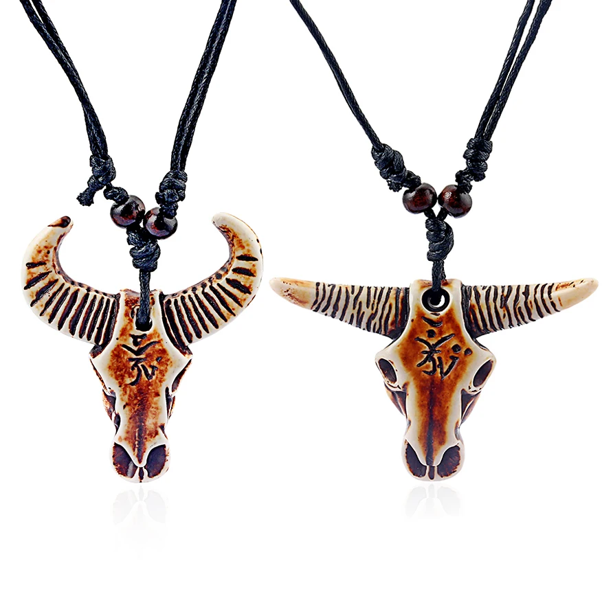 12 шт панк стиль имитация кости яка бык/бык голова резная подвеска Йога ожерелье женщины и мужчины ювелирные изделия