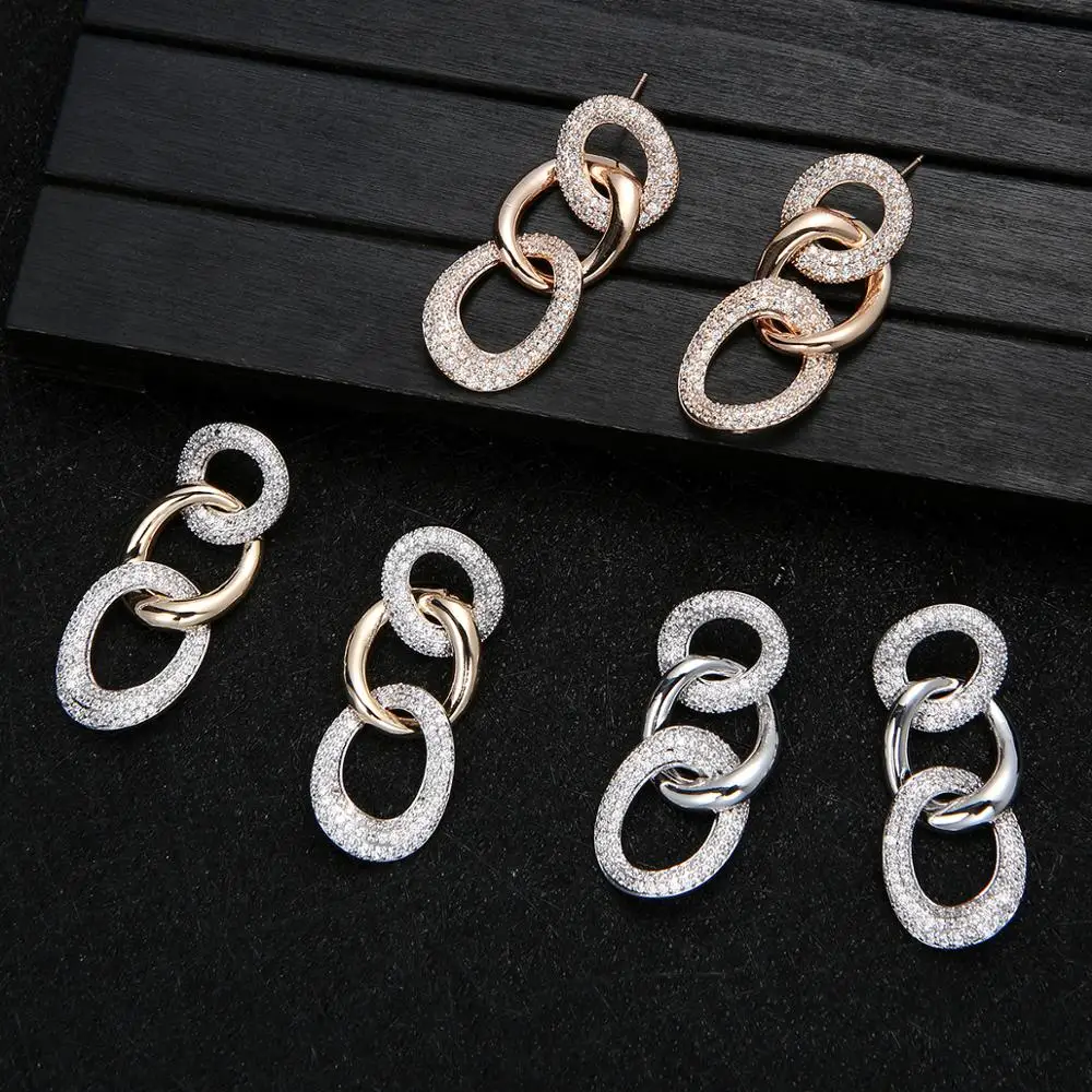 Роскошные круглые Висячие серьги для женщин, аксессуары, серьги с кубическим цирконием, ювелирные изделия, серьги mujer moda E9102