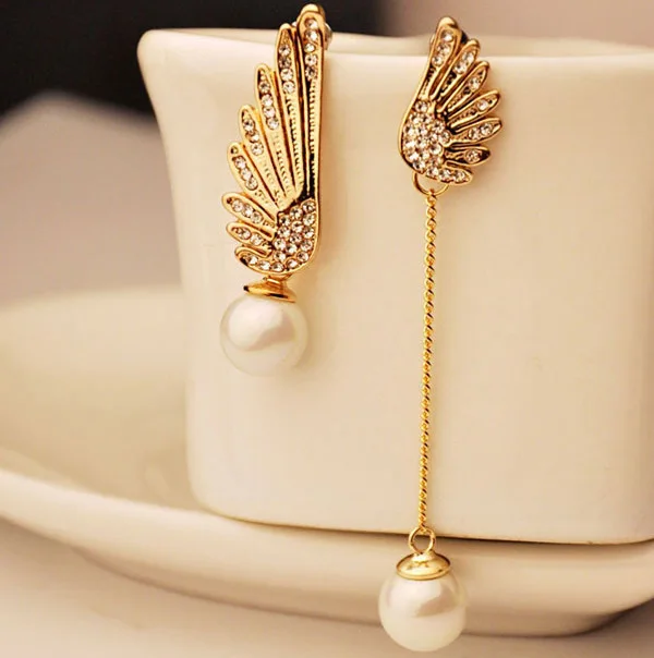 Женские серьги с крыльями ангела, ассиметричные серьги с искусственным жемчугом, модный подарок, 2019