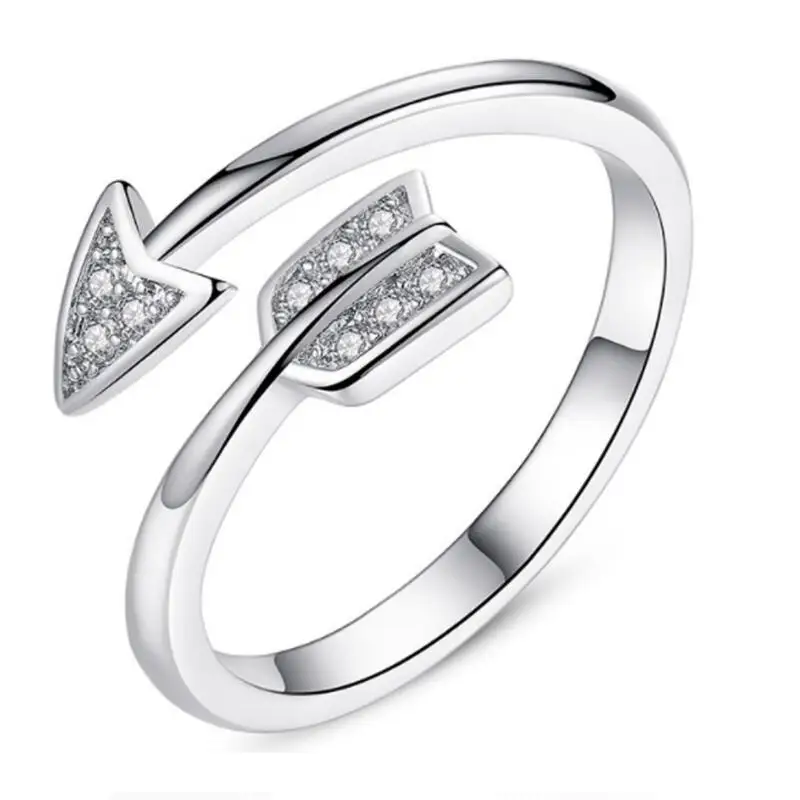 Новинка 2020, брендовые Модные посеребренные Кристальные кольца со стрелой для женщин, регулируемое обручальное кольцо, Женское кольцо с открытой стрелкой, подарок для любви