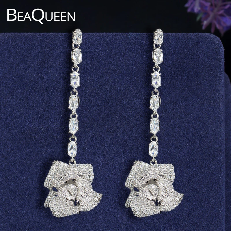 Blingzircons 925 серебро Для женщин Изделия Большой розы падение микро проложили Кристалл Длинные Серьги с циркония Камни E080