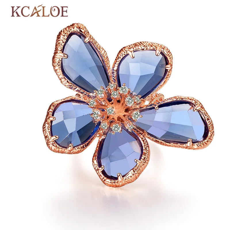 KCALOE синий прозрачный кристалл свадебные кольца большие цветы ювелирные изделия посеребренные кубический цирконий обручальное кольцо Anel ...