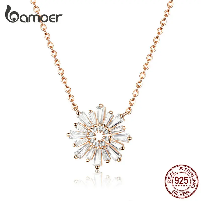 Bamoer Сияющий Подсолнух короткое ожерелье для женщин прозрачный CZ розовое золото цвет 925 пробы серебро обручальное ювелирное изделие BSN117