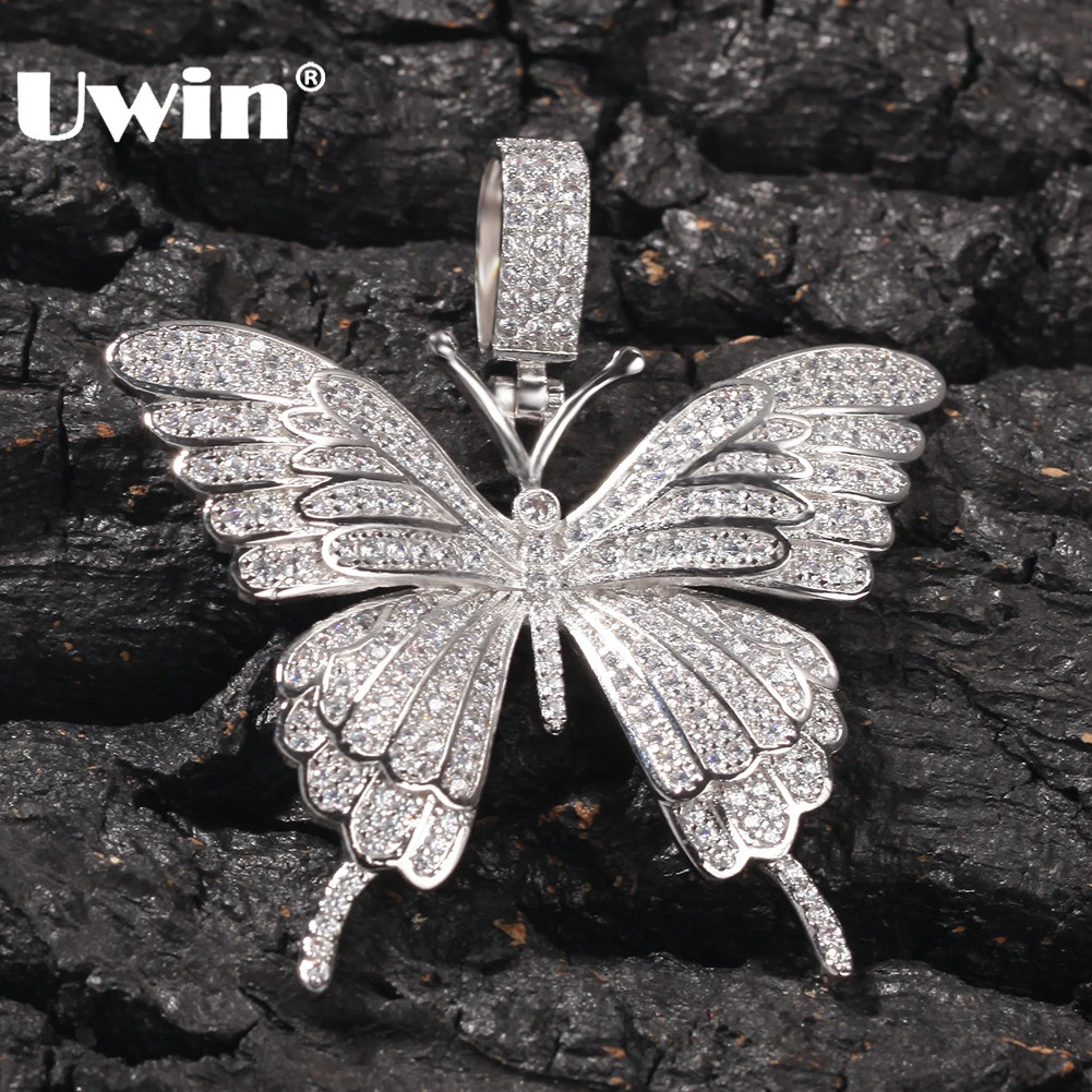 UWIN, модное Очаровательное ожерелье с подвеской в виде бабочки, вымощенное Льдом Из ААА кубического циркония, Мужская цепочка в стиле хип-хоп...