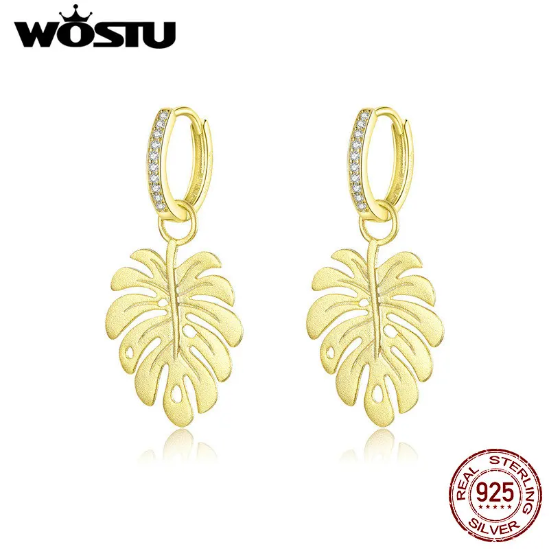 WOSTU Gennuie 925 Висячие серьги из серебра 925 пробы классический золотой цвет Monstera лист CZ серьги 2019 Горячая Мода ювелирные изделия CTE223