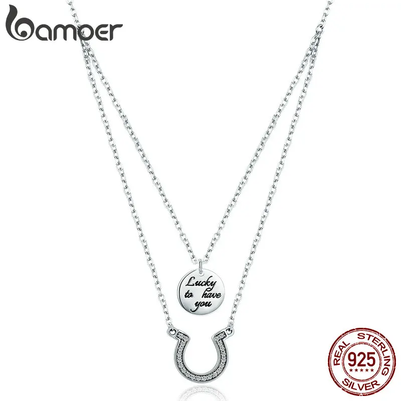 BAMOER Настоящее серебро 100% 925 пробы, Двухслойное ожерелье с кулонами в виде монет, Женские Ювелирные изделия из стерлингового серебра, подарок SCN235