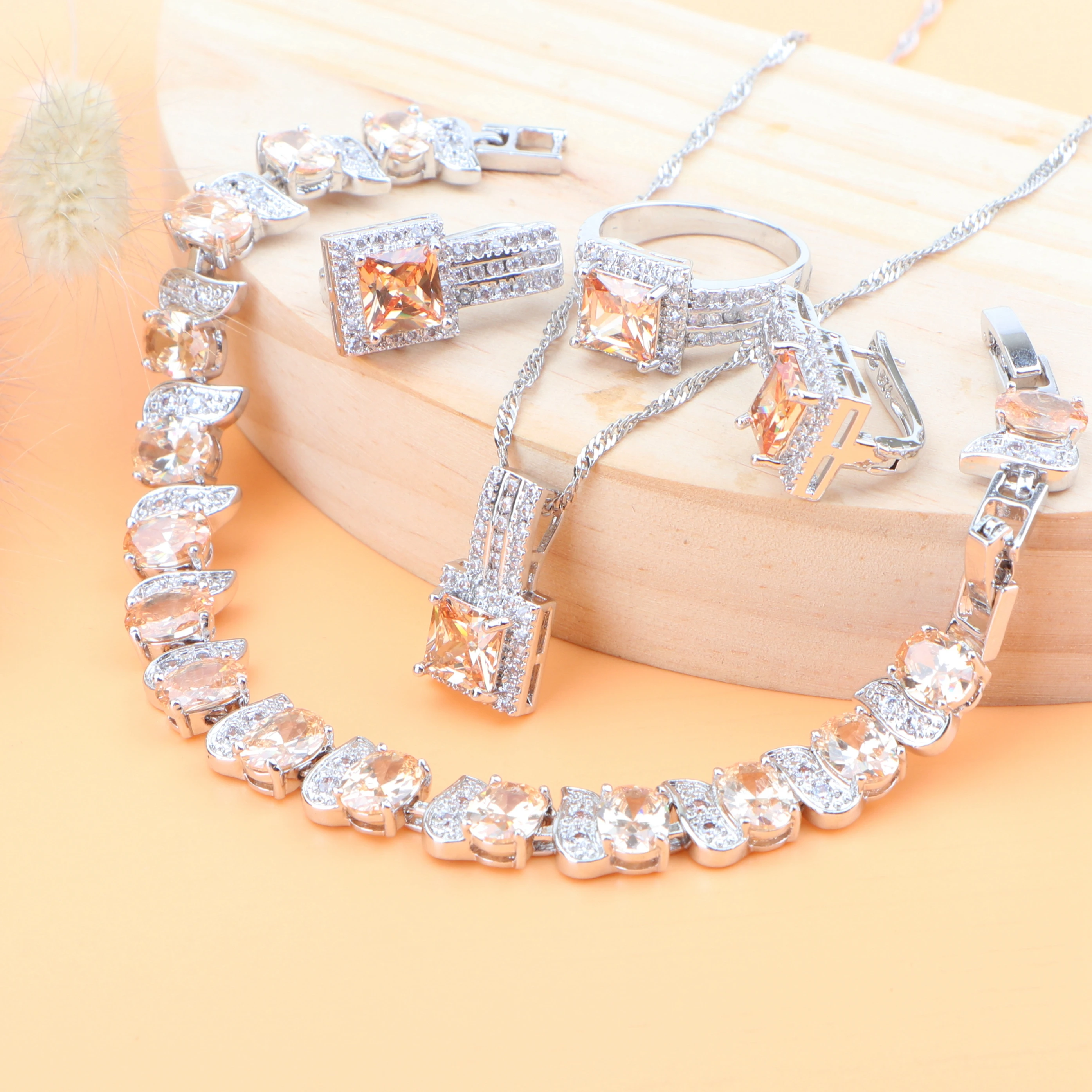 925 стерлингового серебра Свадебные Ювелирные наборы циркония черные серьги Камни для женщин ожерелье кулон кольца браслет Набор подарочны...