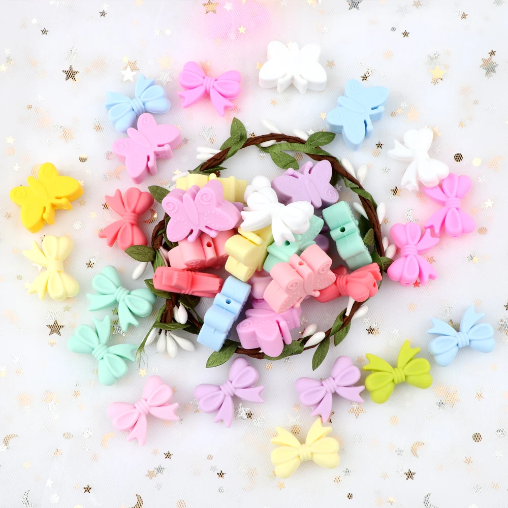 TYRY. HU 50 шт. без БФА, силиконовый бабочка свободные бусины милый галстук бабочка для кормящих жевательные бусины ожерелье самодельное и ювели...