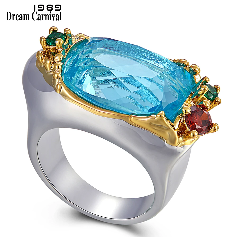Женское кольцо DreamCarnival, женское кольцо для свадьбы, широкий дизайн, красивые цвета, большой синий циркониевый цвет, WA11774