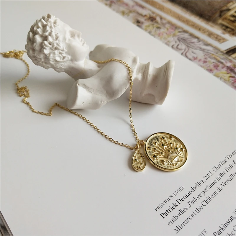 Монета Сатурн, золотого цвета, ниспадающее ожерелье на шею, из стерлингового серебра 925 пробы, овальный двойной кулон, ожерелье в стиле бохо, многослойное ожерелье