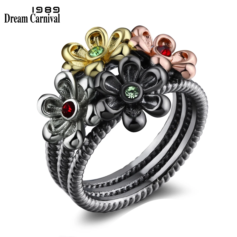 Женское Винтажное кольцо DreamCarnival, Винтажное кольцо с Мути цветами, нео-готическим цирконием, черного и золотого цвета, WA11533