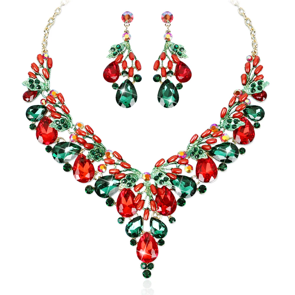 Модное ожерелье с кристаллами, серьги, индийский роскошный свадебный комплект ювелирных изделий, свадебный костюм для выпускного вечера, ювелирные изделия, рождественский подарок для женщин