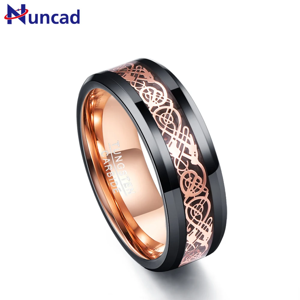 Nuncad День Святого Валентина Для мужчин кольца Размеры 7-12 8 мм Широкий цвета розового золота дракон рисунок вольфрамовой стали кольцо t050R