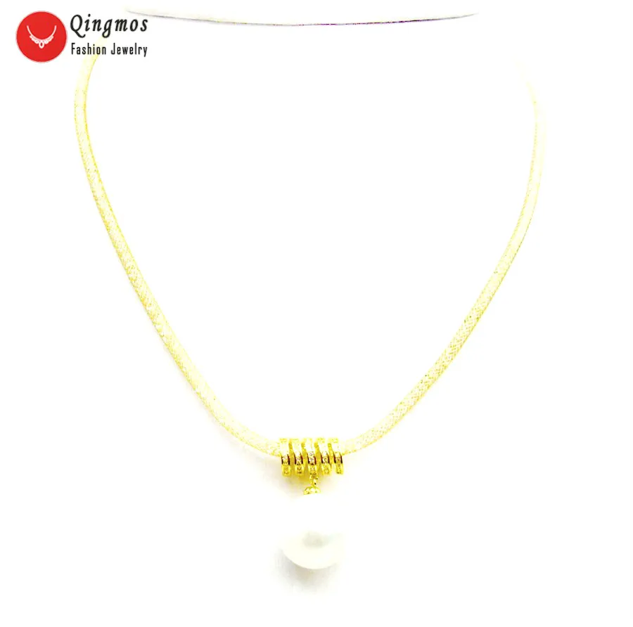 Qingmos 16 мм круглый белый Морские подвеска из перламутровой жемчужины Цепочки и ожерелья для Для женщин с сетка из кристаллов цепи латунь внут...